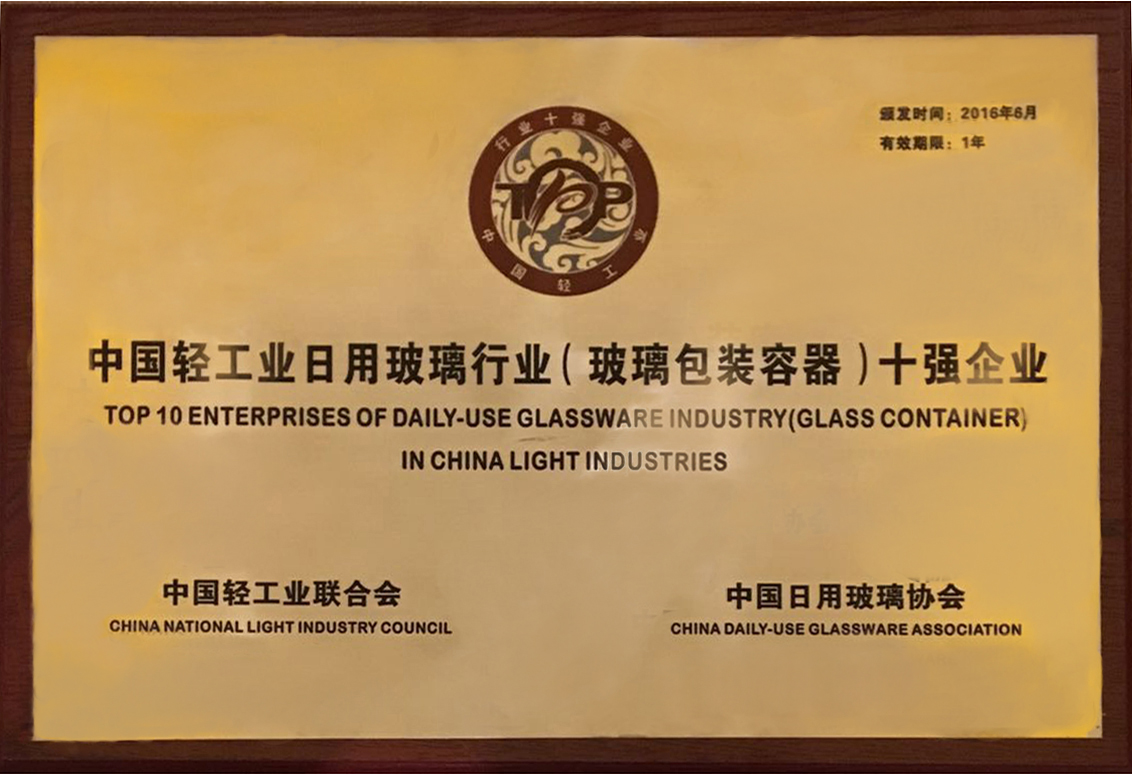集團公司獲日用玻璃十強企業殊榮